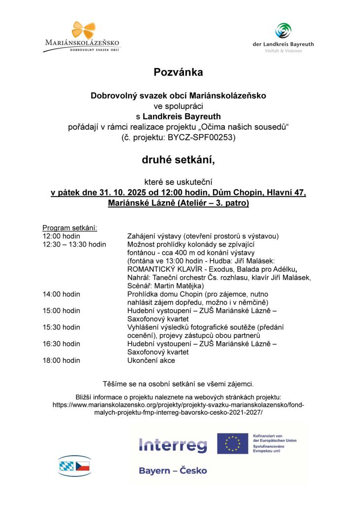 Pozvánka na druhé setkání Mariánskolázeňsko - Landkreis Bayreuth