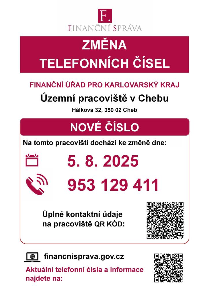 Změna telefonních čísel - Finanční úřad pro Karlovarský kraj Územní pracoviště v Chebu